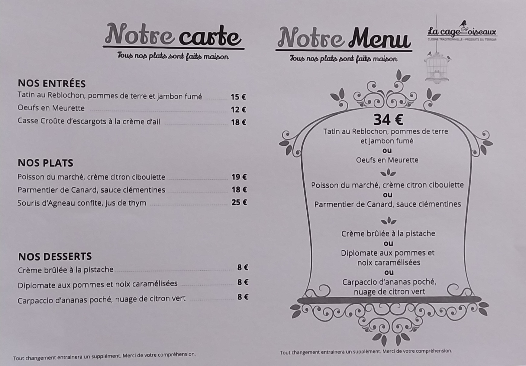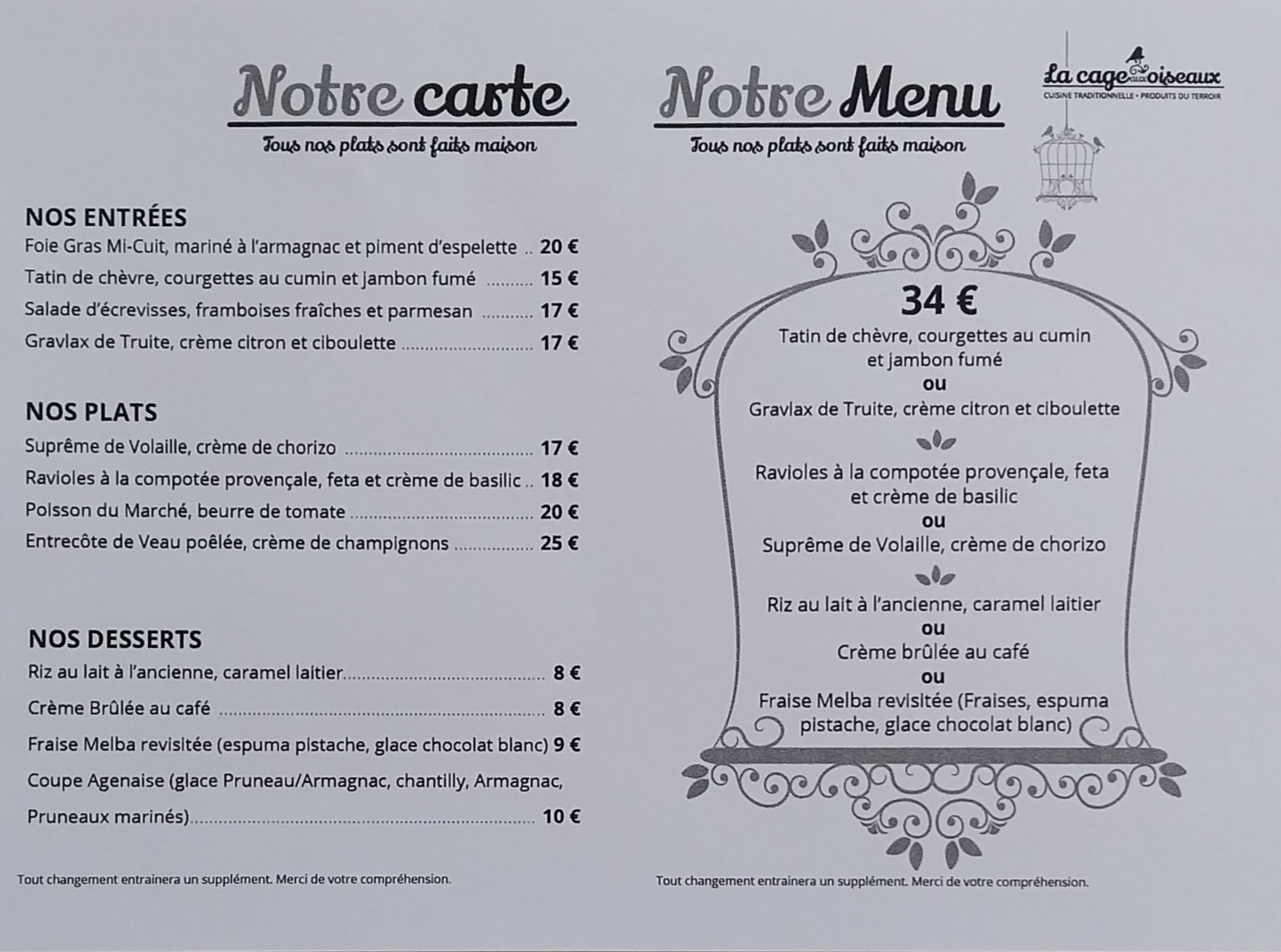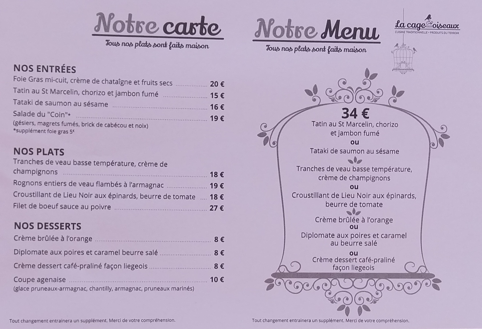 Restaurant français | LA CAGE AUX OISEAUX | Montjoi