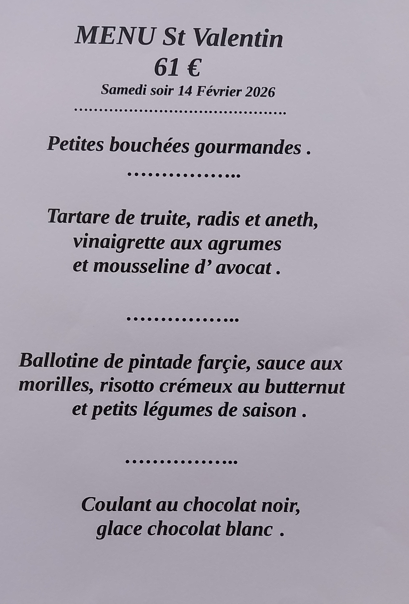 D’ailleurs, vous pouvez aussi venir chez nous en voiture ; nous avons des places de parking gratuites pour vous. Notre restaurant est facilement accessible aux personnes à mobilité réduite. Pour que les clients accompagnés de leurs chiens puissent également profiter de leur passage chez nous, les animaux domestiques sont les bienvenus. Prenez contact avec nous et réservez dès maintenant. Il vous suffit de nous contacter par tél. au +33563952640. Vous pouvez payer en espèces ou par chèque, tickets repas, chèque-vacances, carte VISA, MasterCard et paiement dématérialisé. Si vous êtes intéressé, vous pouvez également fêter votre événement privé dans nos locaux. Nous avons également les locaux pour organiser des événements majeurs tels que des fêtes de mariage – n’hésitez pas à nous contacter ! Vous pouvez venir nous rendre visite tous les jours.